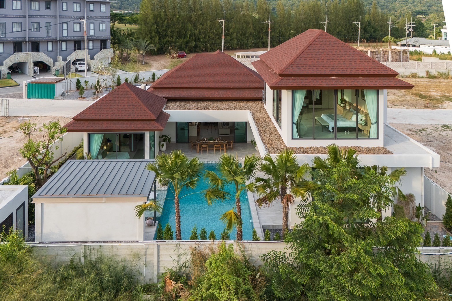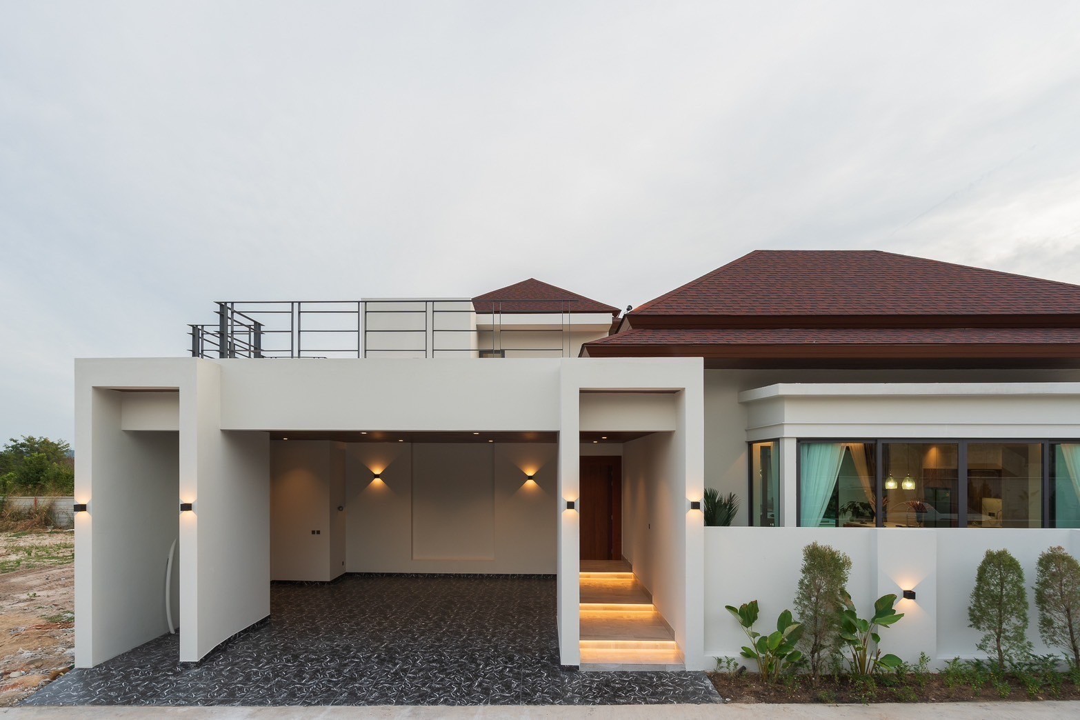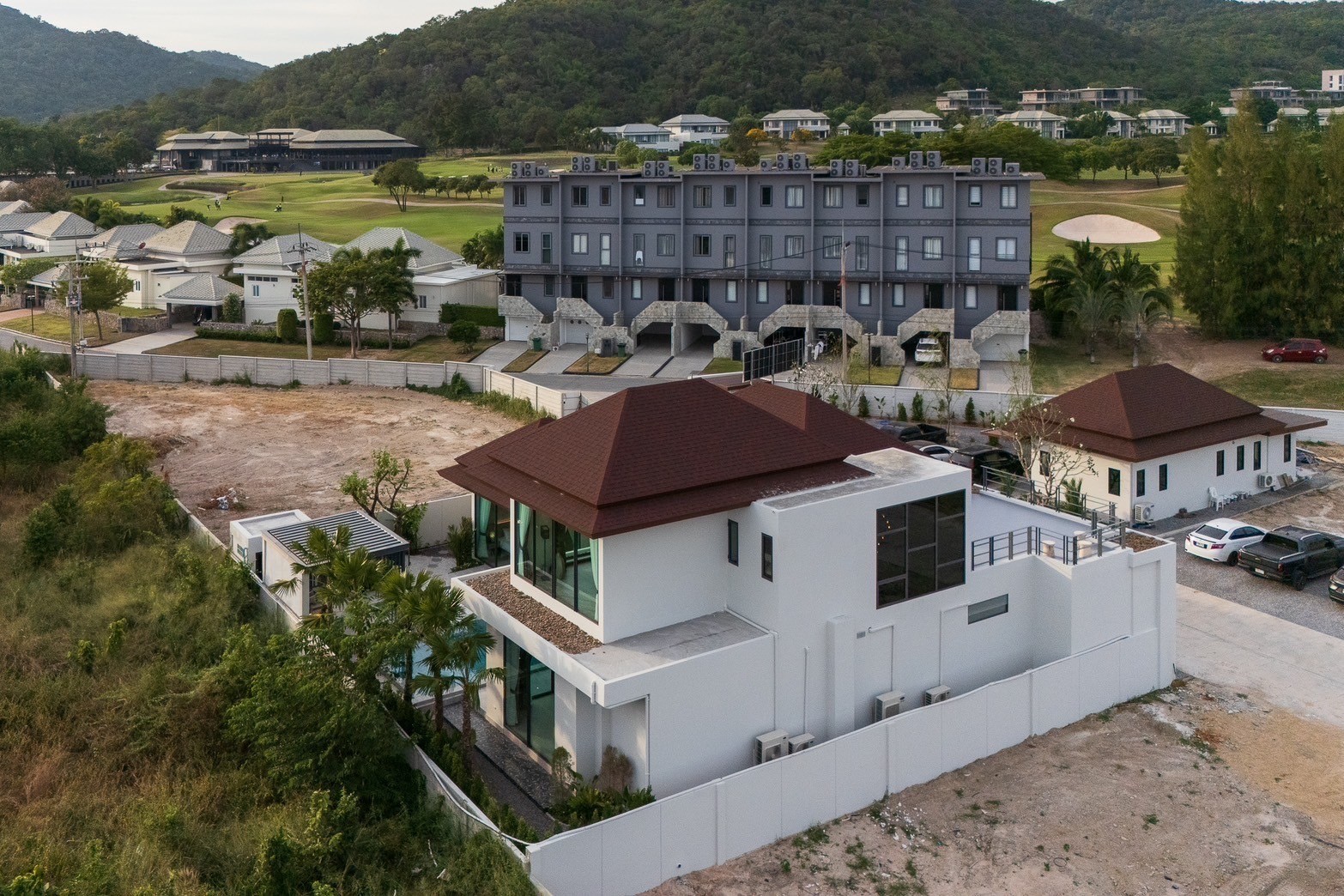 Noteworthy features of this one-of-a-kind project include the villas’ positioning with the golf course on one side and the driving range on the other, emphasizing the scenic beauty of Hua Hin. The design seamlessly integrates with the surroundings, offering a large second-story terrace with breathtaking 360-degree views.