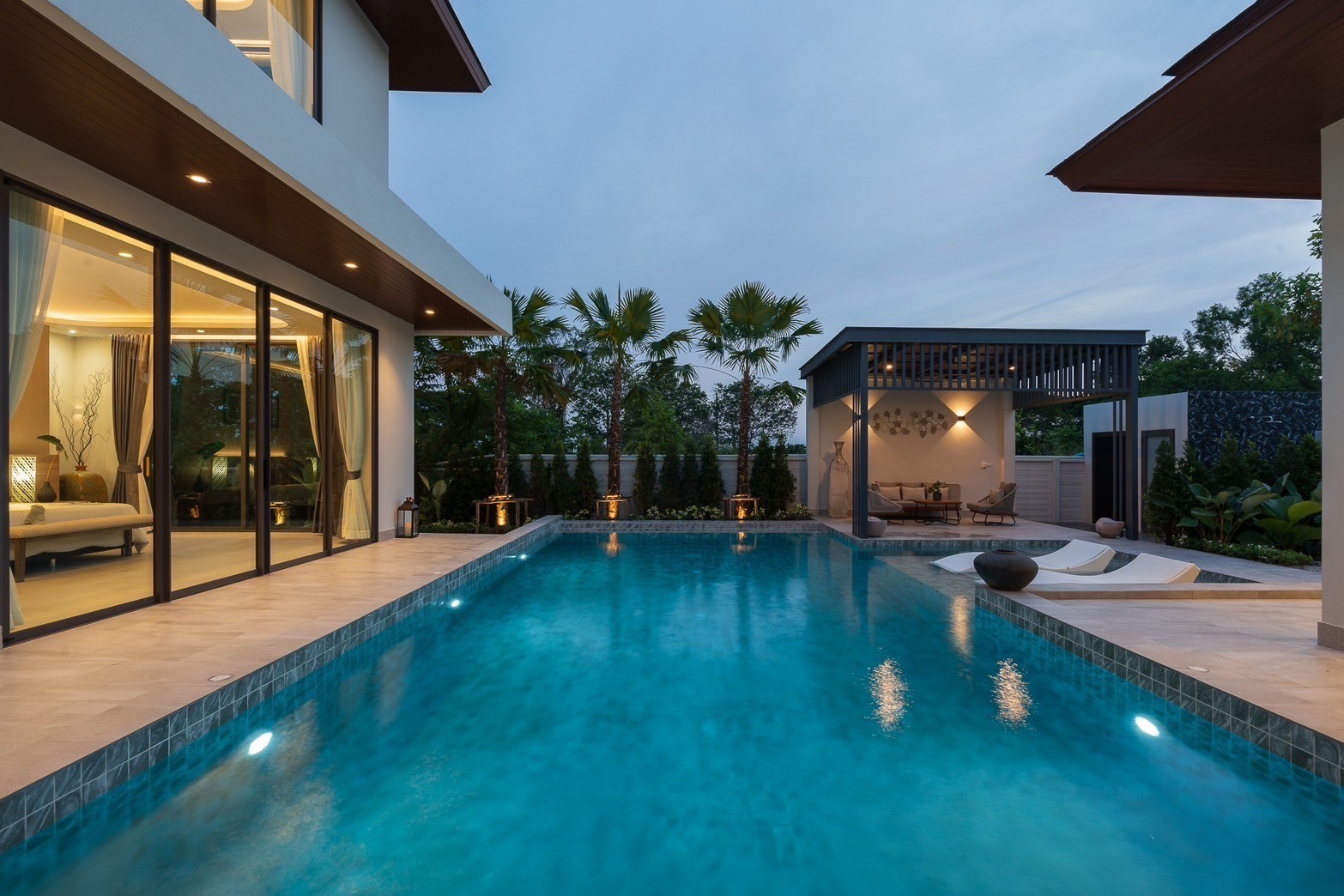 Embodying elegance and luxury, the project presents three distinct designs featuring three or four bedrooms and four or five bathrooms. The master bedroom opens up to a spacious terrace, carefully planned to enhance the outdoor living experience. With ample space around the terrace and pool area, The Birdie Pool Villas provide the perfect setting for quality time with friends and family.